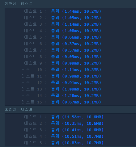 효율성 테스트의 결과를 보니 시간복잡도가 굉장히 중요한 문제 같습니다.