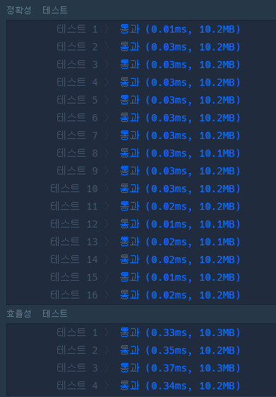 예상대로 정확성 테스트는 모두 통과를 했네요.